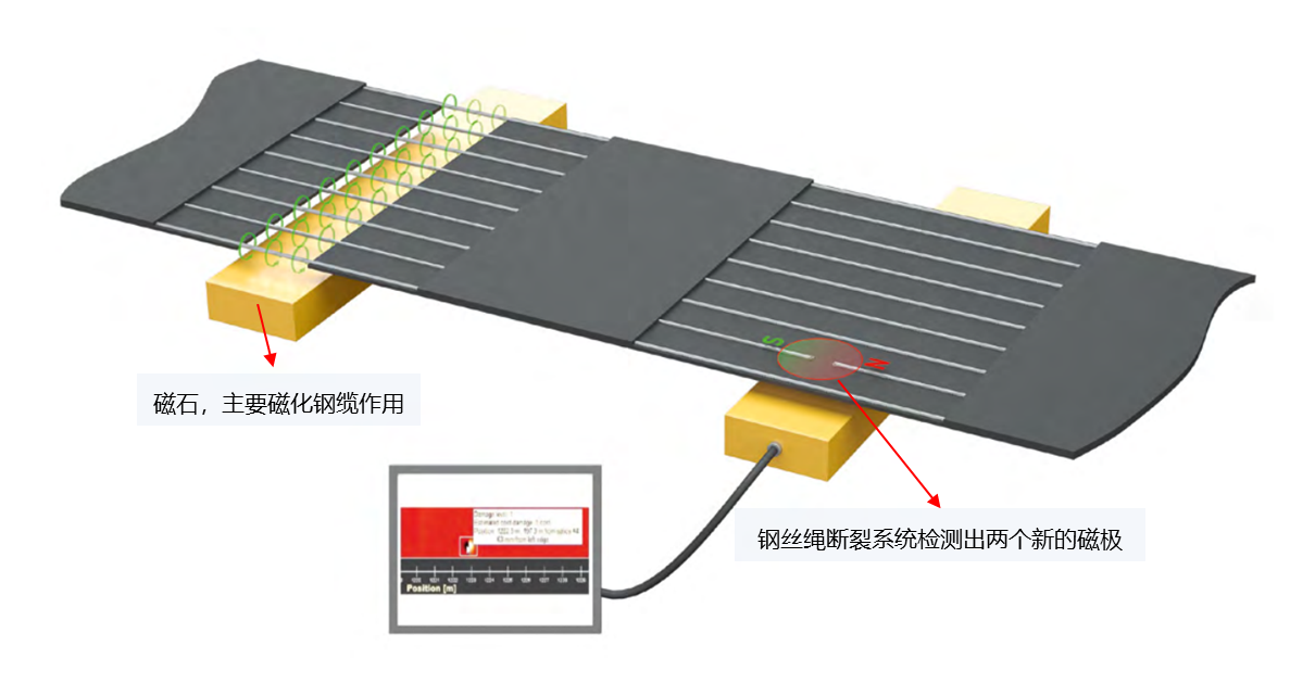 皮帶健康監(jiān)測(cè)系統(tǒng)基于霍爾傳感器原理,能夠準(zhǔn)確探測(cè)輸送帶內(nèi)鋼芯的斷點(diǎn)位置,在實(shí)際運(yùn)行環(huán)境和工作條件,如果鋼纜上的任何?點(diǎn)發(fā)生損壞(例如切割),就會(huì)產(chǎn)生兩個(gè)新的磁極,并且立即可見(jiàn)。